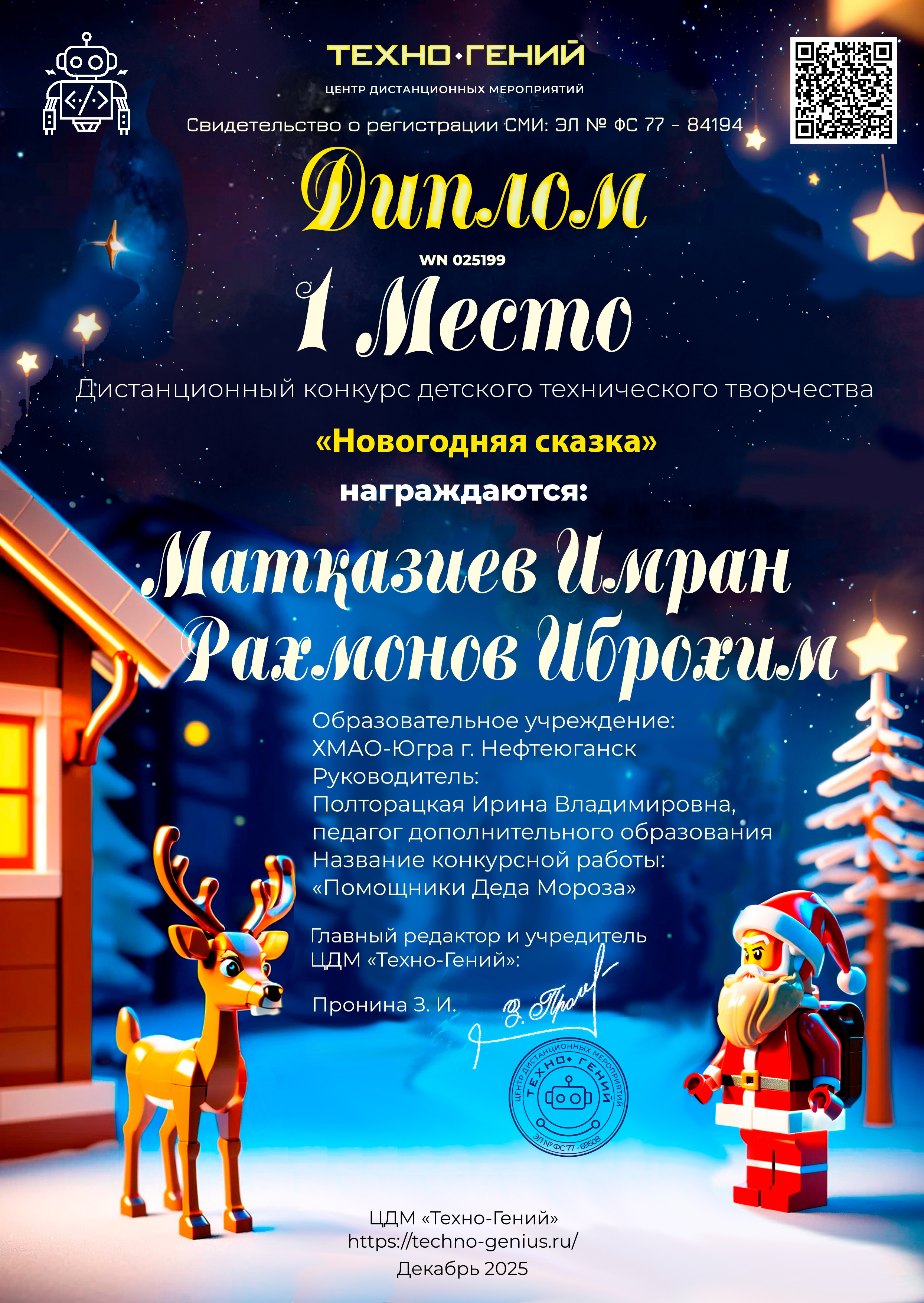 Матказиев Имран, Рахмонов Иброхим, «Помощники Деда Мороза». Конкурс: Новогодняя сказка.