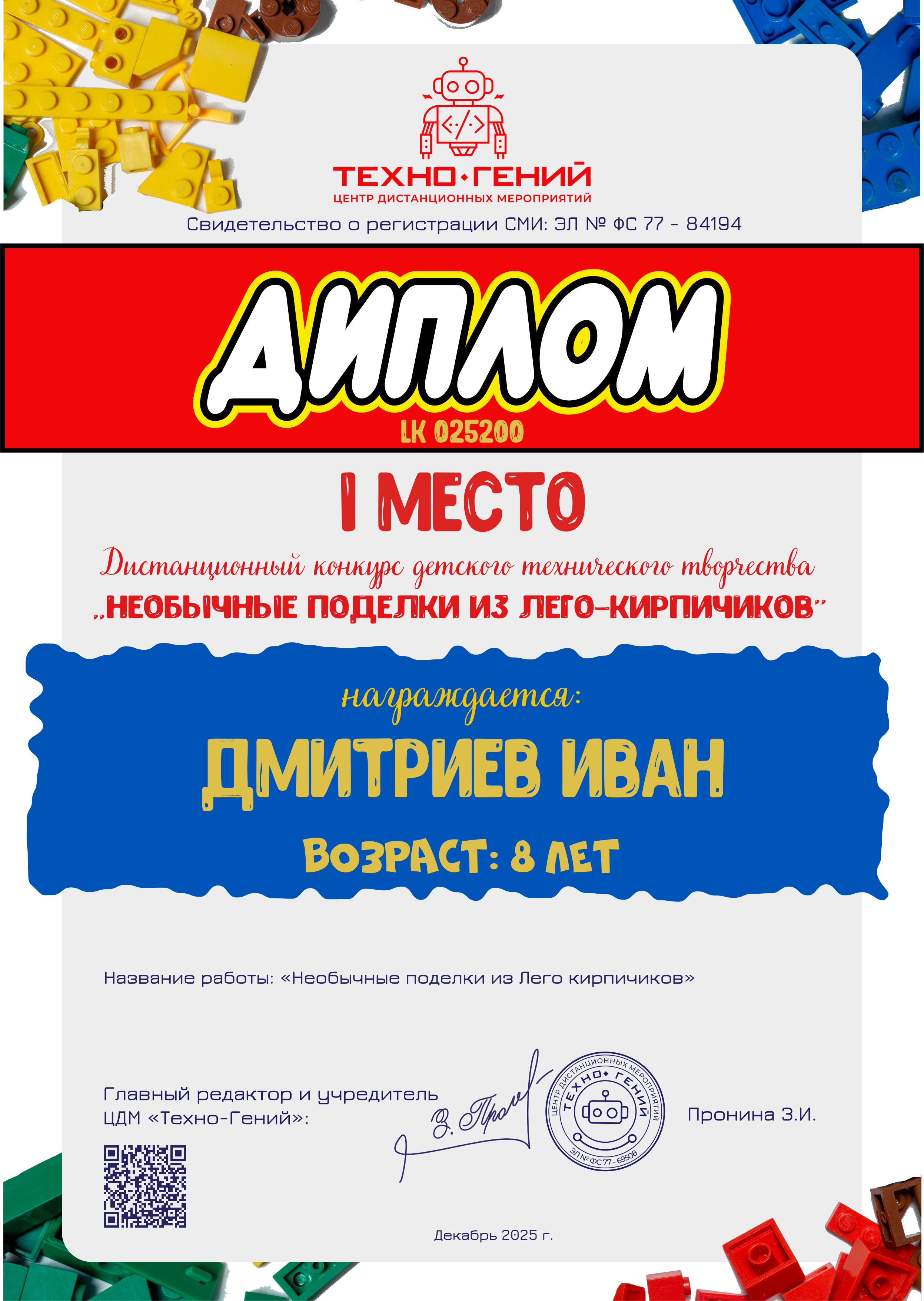 Дмитриев Иван, «Необычные поделки из Лего кирпичиков». Конкурс: Необычные поделки из лего-кирпичиков.