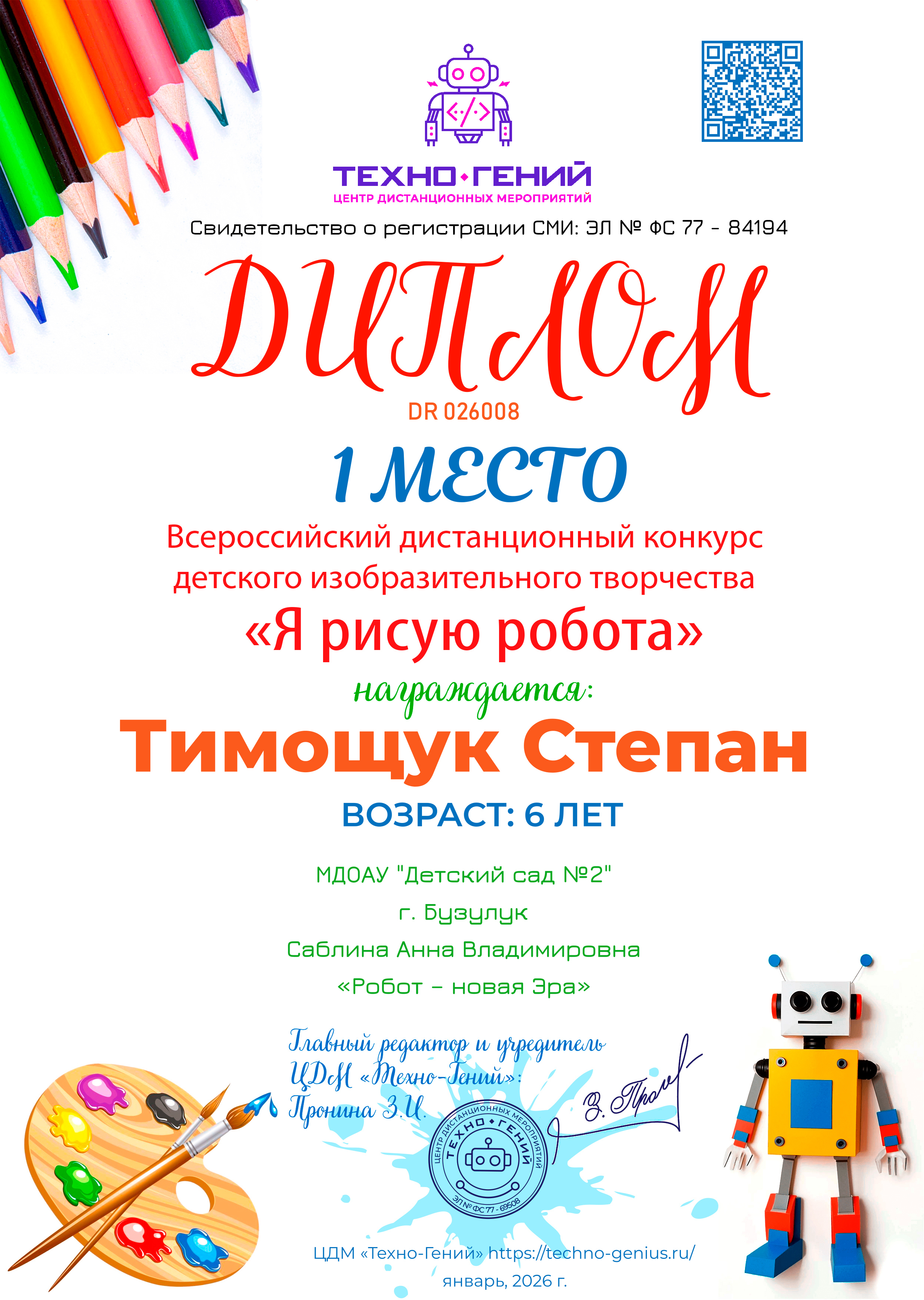Тимощук Степан, «Робот – новая Эра». Конкурс: Я рисую робота.