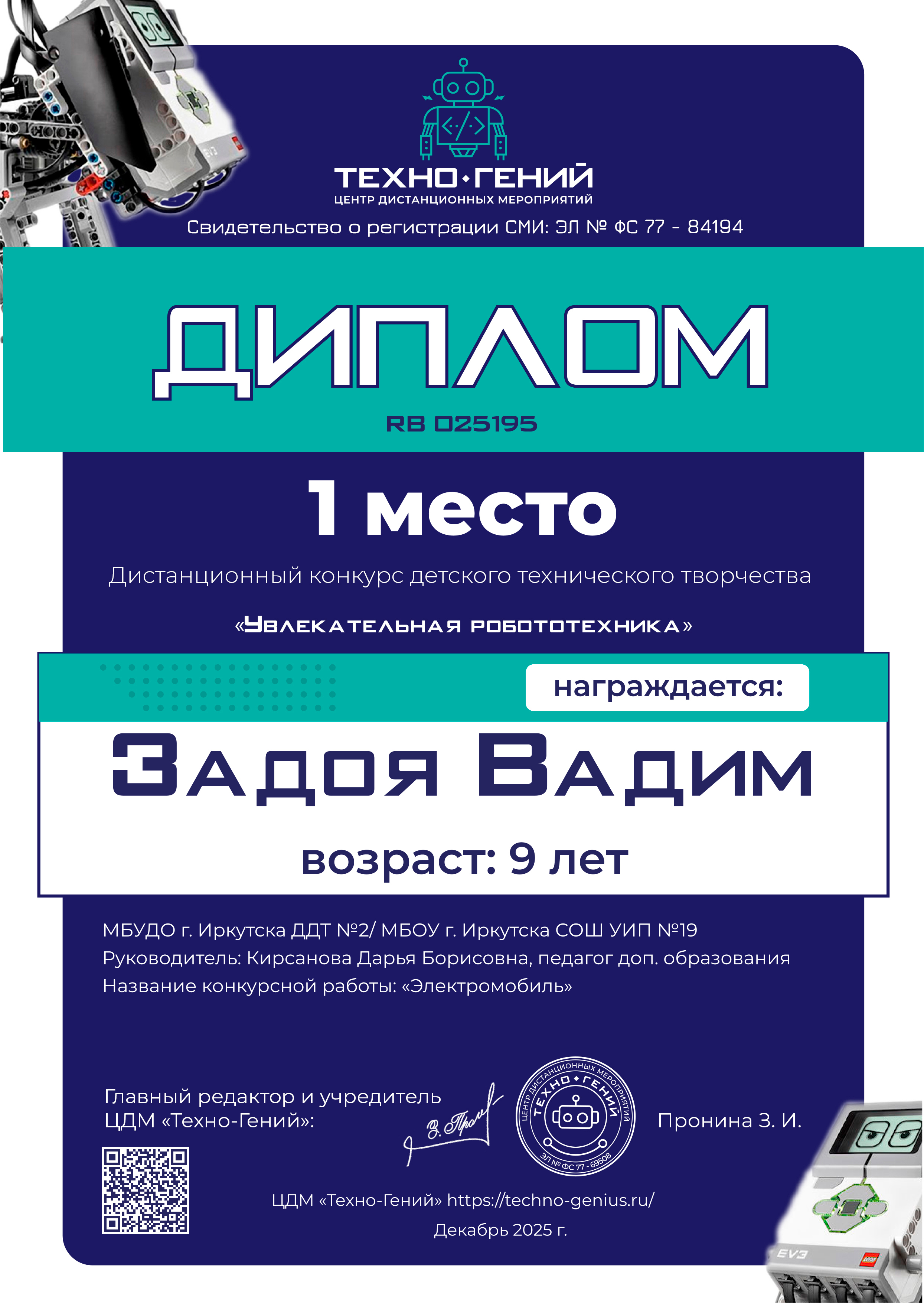 Пономарев Артем, «Дорога будущего». Конкурс: Увлекательная робототехника.