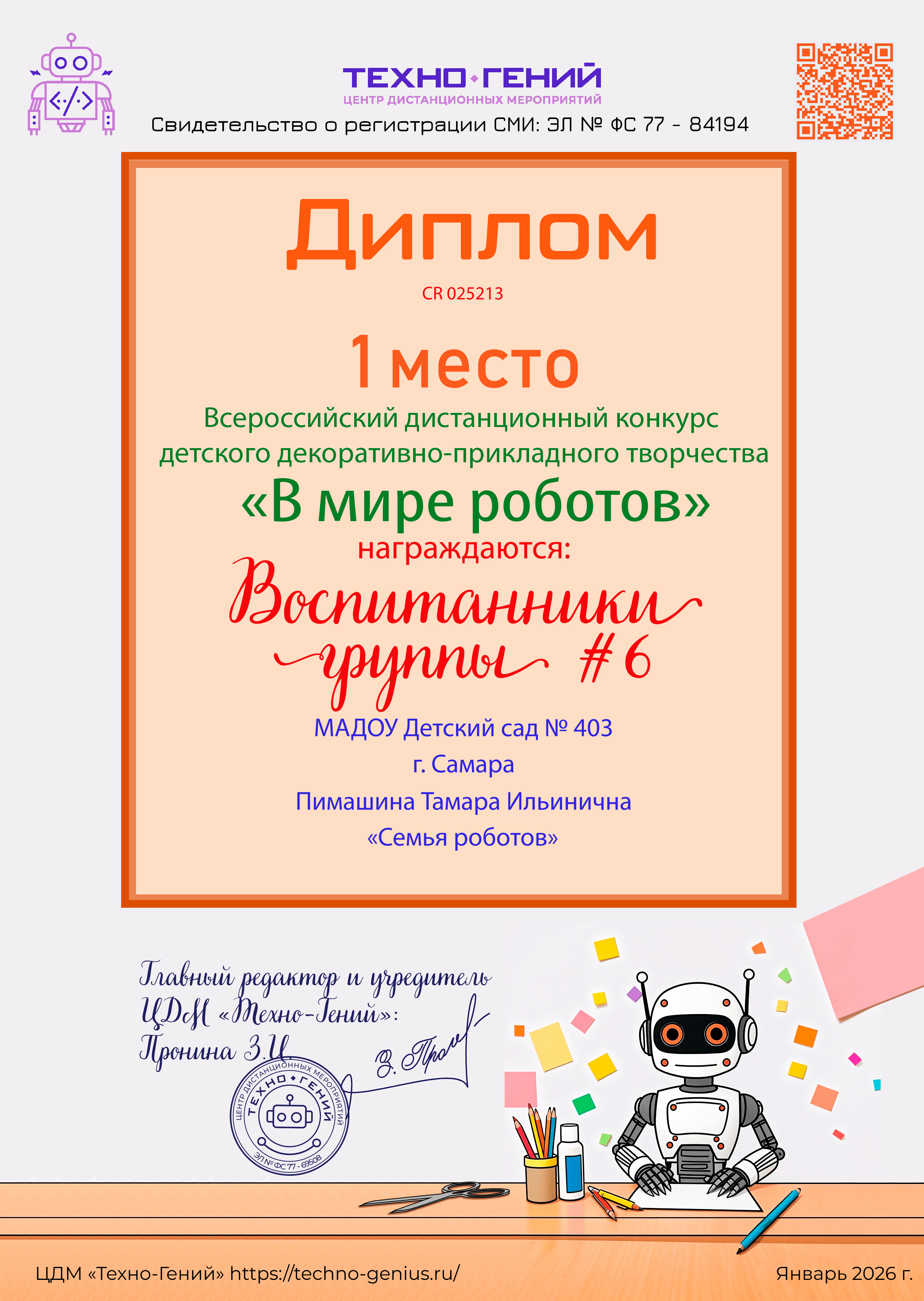Уважаемые участники! Ваши лучшие работы будут выставлены на нашей странице в ВК:: https://vk.com/techno_genius.