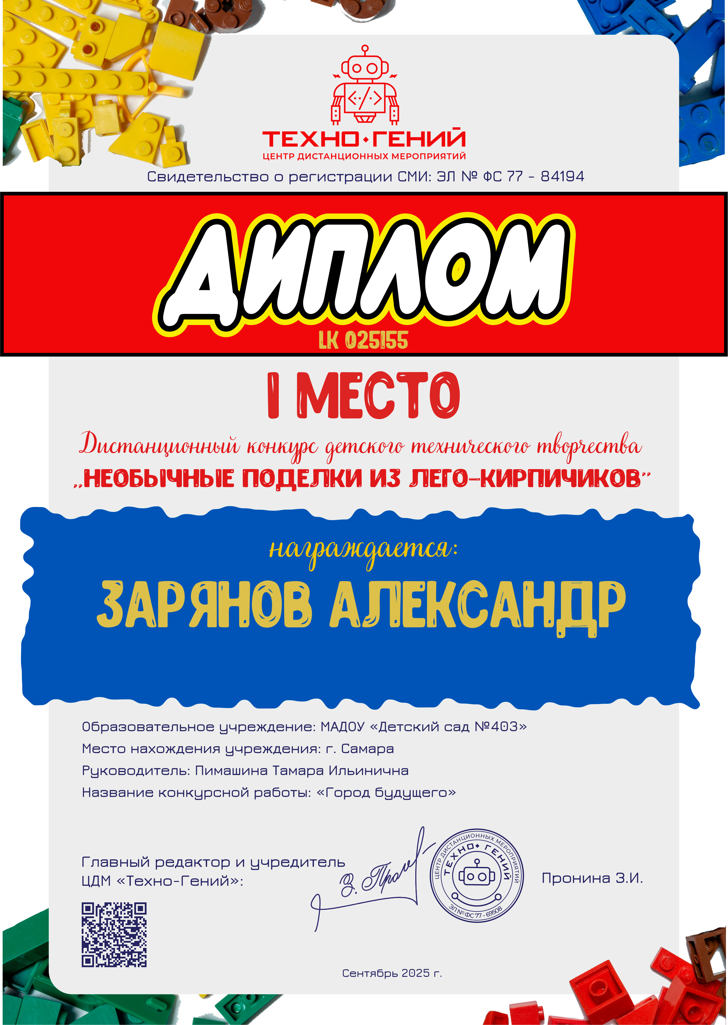 Зарянов Александр, «Город будущего». Конкурс: Необычные поделки из лего-кирпичиков.