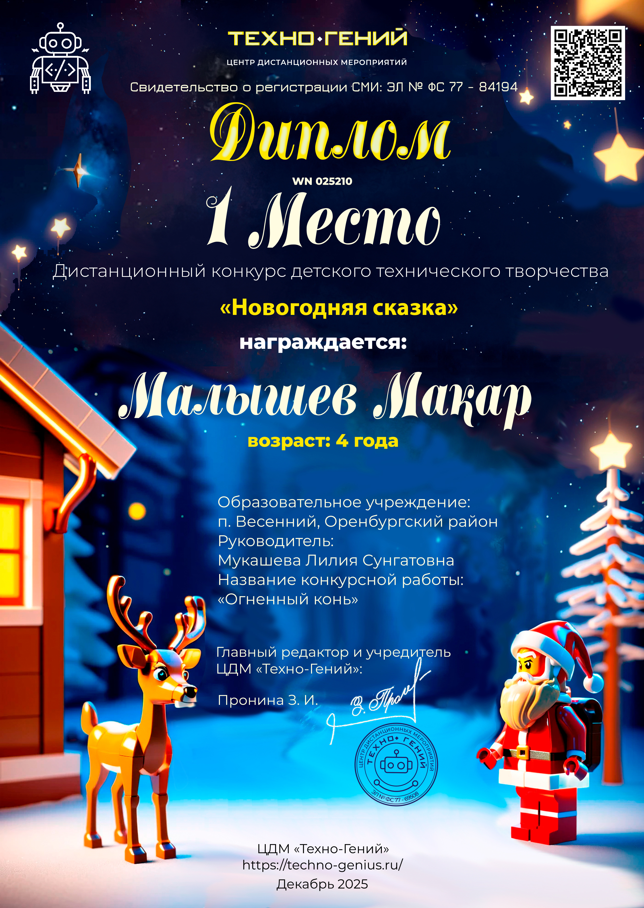 Малышев Макар, «Огненный конь». Конкурс: Новогодняя сказка.
