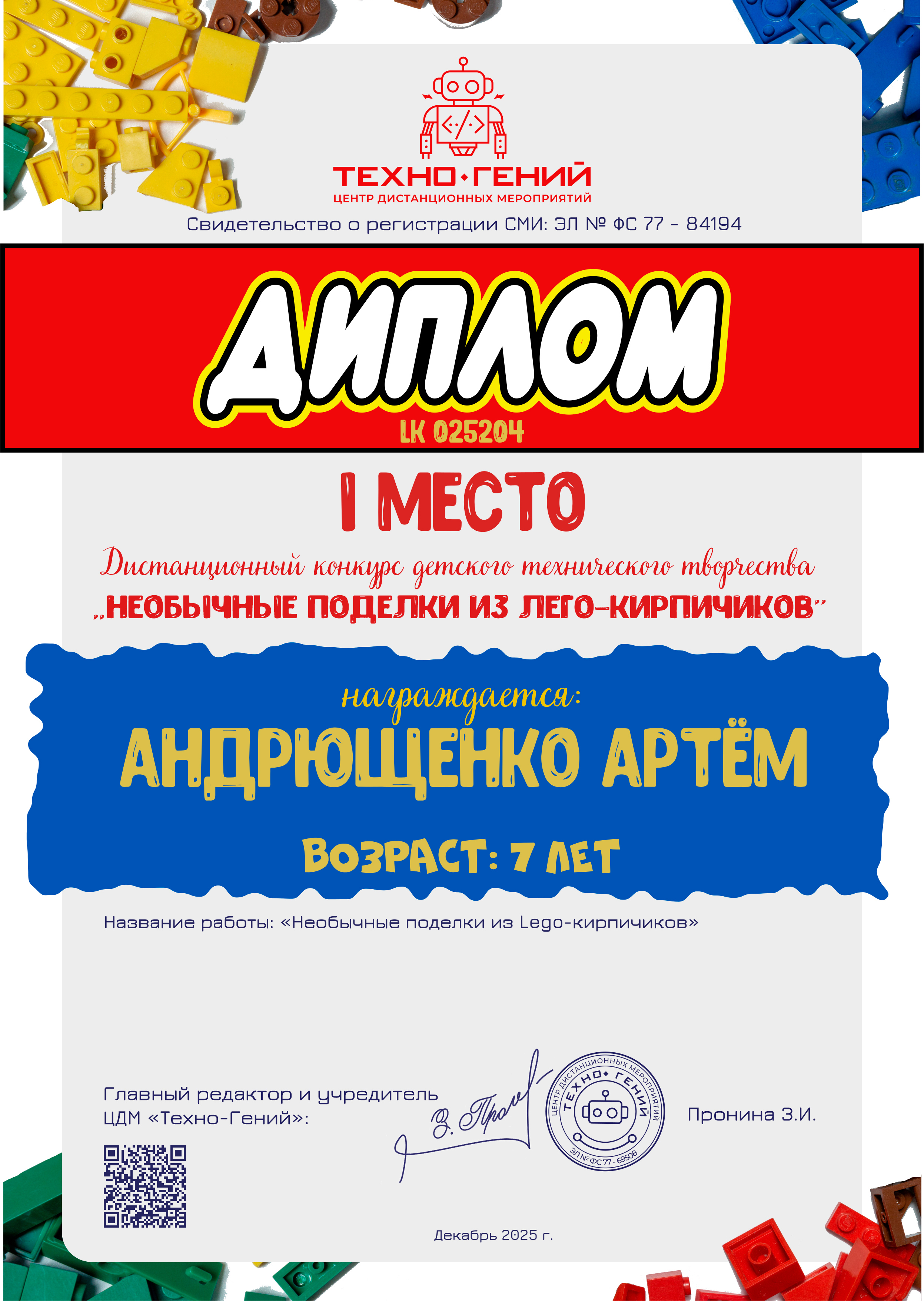 Андрющенко Артём, «Необычные поделки из Lego-кирпичиков». Конкурс: Необычные поделки из лего-кирпичиков.