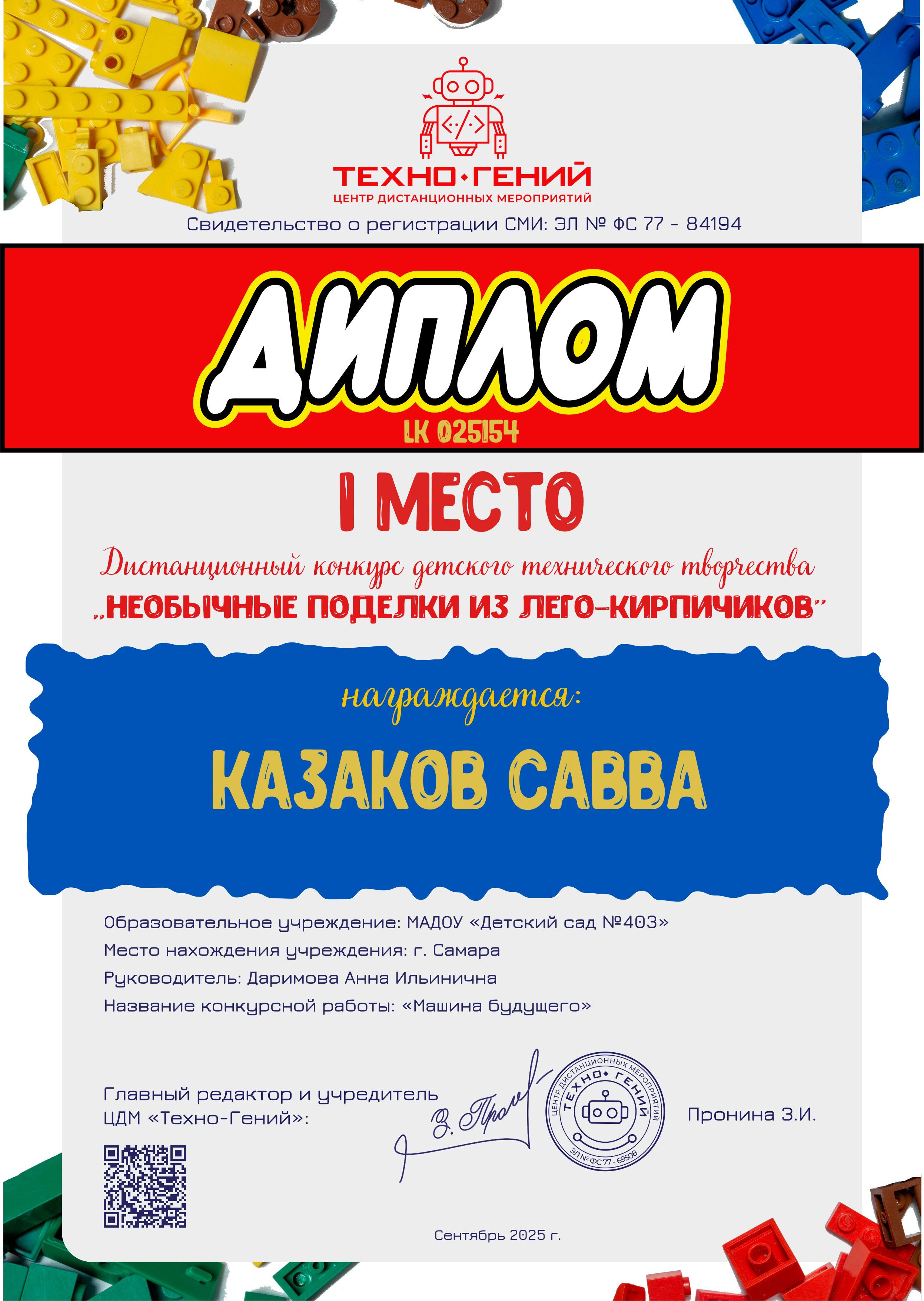 Казаков Савва, «Машина будущего». Конкурс: Необычные поделки из лего-кирпичиков.